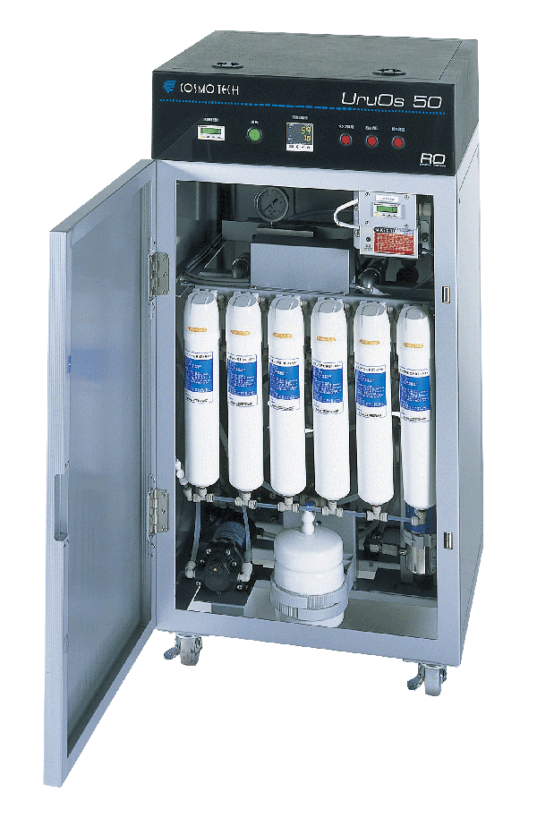 逆浸透膜ろ過(RO)純水装置一体型の UruOs-50RO は、